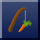 It appears as one carrot hanging off of a curved brown stick, attached to it by one piece of white string.