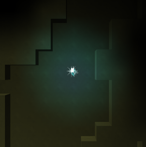 A diamond glowing in a cavern.