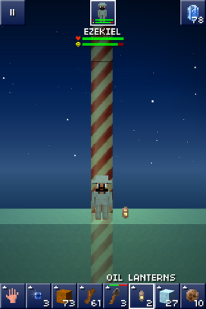 The pole itself is made of backwall blocks and can have oil lanterns, ladders, or other blocks placed on it.